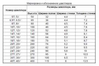 - type de profilé utilisé - le type de poutre, la série - P, U, E et l'épaisseur de paroi sont indiqués.