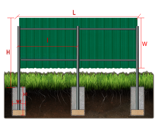 La tôle profilée de la clôture doit être calculée de manière à ce que, sans préjudice du côté esthétique et protecteur du problème, il y ait un minimum de déchets. La disposition des supports est adaptée aux paramètres des tôles. La norme est de 120 cm de largeur et 200, 300 cm de hauteur. Le projet est ajusté à ces dimensions.