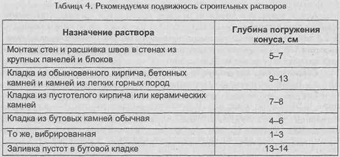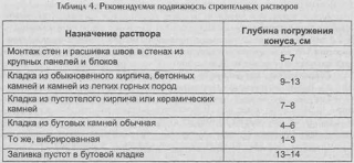 - Mobilité des solutions est déterminé en plongeant le cône dans le mélange qui vient d'être fait. Plus le cône s'enfonce profondément, plus le degré de mobilité est élevé. Il est généralement admis que pour un mur en briques pleines, un mélange d'un niveau de 9 à 10 mm est nécessaire ; pour murs en briques creuses 7 - 8 mm; pour chape 5 - 6 mm. Le degré de fluidité du mélange peut varier de 8 à 12 mm.