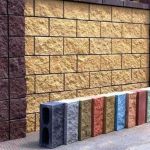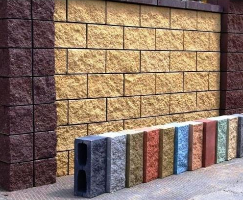 - Produits colorés. Lors de la fabrication, de la craie de couleur, de la poudre de brique concassée, du ciment Portland sont ajoutés à la masse. Le matériau est utilisé dans la construction de clôtures, de colonnes décoratives, de pignons de bâtiments.