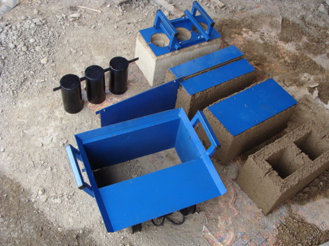 - permettre l'utilisation des déchets de construction (ciment cassé, chapes, plâtre) dans la fabrication de manière artisanale ;