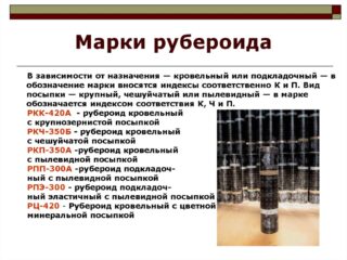 Un tiret est suivi d'un chiffre qui indique la masse de 1 m² de la base, prévue lors de la fabrication. La densité et la résistance du matériau, le poids du rouleau de matériau de toiture dépendent de l'indicateur.