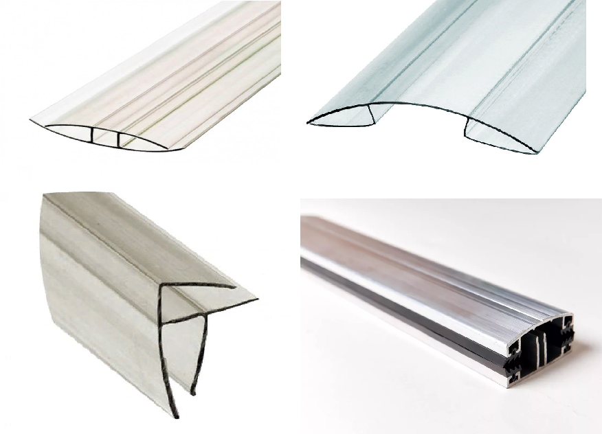 Des joints en caoutchouc sont installés dans les pièces en aluminium, qui scellent de manière fiable les joints des panneaux. Les bandes ne sont pas destinées aux structures cintrées et sont le plus souvent utilisées dans des éléments en polycarbonate monolithique ou en nid d'abeille d'une épaisseur supérieure à 16 mm.