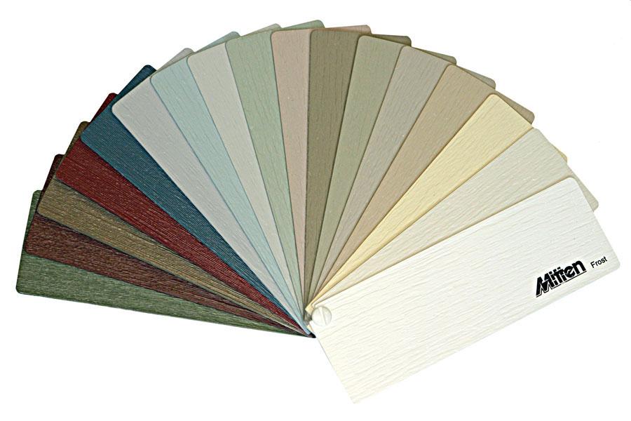 Le revêtement est présenté dans une large gamme de tailles, de couleurs et de textures. Les produits sont monochromes, imitant des matériaux naturels et artificiels, fabriqués à partir de diverses matières premières.