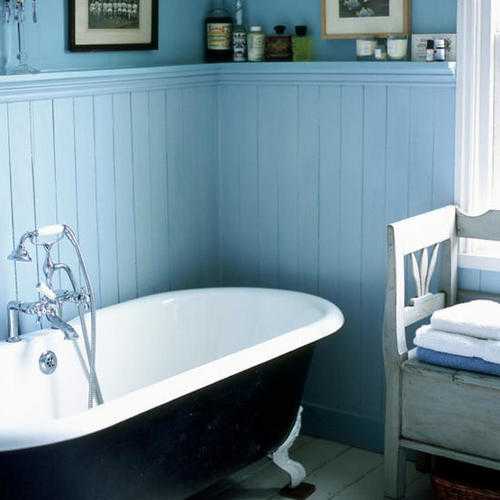 - Salle de bains... L'objet se caractérise par une humidité élevée et une forte probabilité d'éclaboussures et de jets d'eau sur les murs. Il est préférable d'utiliser ici des revêtements en plastique et sans vides internes. Les lattes en polymère ont une faible conductivité thermique et sont agréables au toucher.Vous pouvez les fixer sur un châssis en acier, mais il est plus conseillé de les mettre sur de la colle. Il n'y a pas d'exigences particulières pour la couleur et la texture.