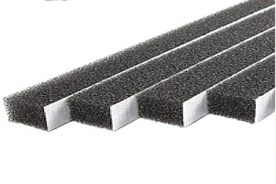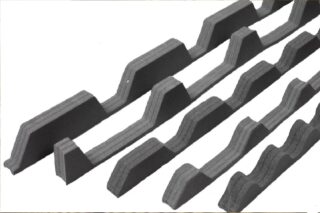 On utilise du polyéthylène expansé de haute densité, modifié dans le processus de production avec des additifs spéciaux. Ce type de ruban d'étanchéité est sélectionné pour chaque configuration de profil. Lors de la fabrication, une face du joint de la tôle profilée est découpée en forme de vagues pour assurer un ajustement parfait. Des trous sont pratiqués dans le corps du joint afin de ne pas perturber la circulation de l'air.