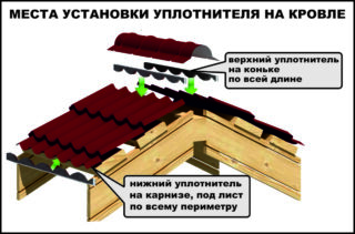 Le joint a une forme spéciale qui suit la forme des vagues d'une tuile métallique ou d'une tôle profilée. Pour tous les types de toiture, leur propre type de joint est réalisé. Le matériau est sélectionné en fonction du type d'ondulation afin d'isoler l'interstice le plus efficacement possible, pour obtenir une étanchéité complète. Par exemple, le compacteur pour carton ondulé C8 diffère en taille du joint pour tôle ondulée H57, car les matériaux ont des hauteurs de vague différentes.
