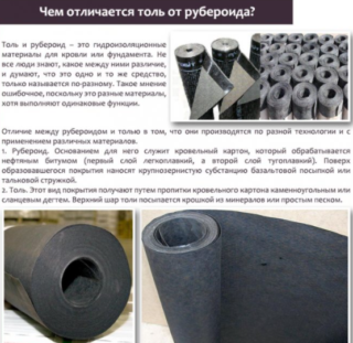 La couche inférieure de la toile est saupoudrée d'une pincée de minéraux à grain fin, la couche supérieure - de sable ou de gros grains durs. Le papier de toiture est très doux et bon marché, il est pratique de l'utiliser pour envelopper des structures, comme une caisse.