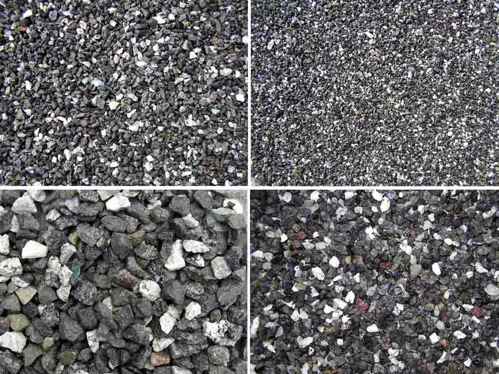 - L'épandage est un mélange de pierre et de copeaux minéraux. Les particules peuvent être de tailles différentes, ce qui affecte les propriétés du matériau. Les grosses miettes colorées confèrent au matériau de toiture une esthétique, reflètent mieux la lumière du soleil et protègent le matériau des rayons ultraviolets.