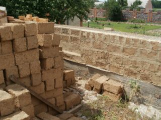 Méthode traditionnelle construction en pisé supposé une sorte de remplissage de mur... Pour cela, 2 boucliers en bois ont été réalisés, fixés à la marque souhaitée. L'espace entre eux était rempli d'un mélange d'argile et de paille. Après durcissement, les boucliers ont été retirés et les fenêtres et les portes ont été coupées à travers le mur. Plus tard, ils ont commencé à fabriquer des briques en adobe.... Cela a quelque peu diversifié l'architecture des bâtiments en pisé.