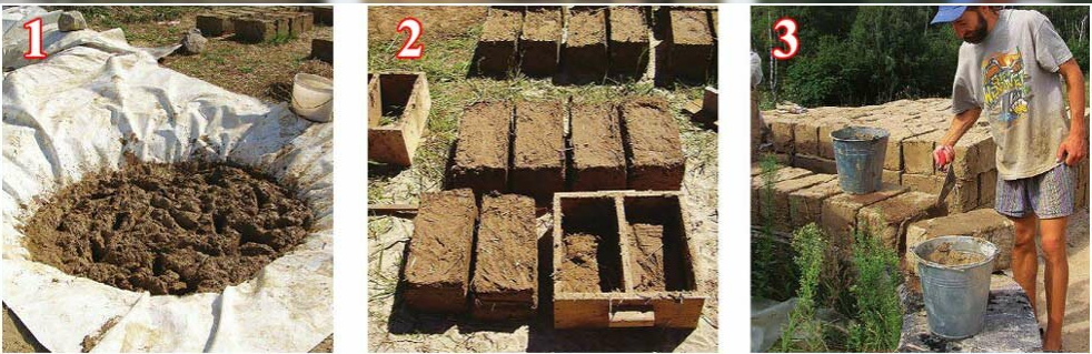 Pour la construction de bâtiments, on n'utilise pas le mélange réel d'argile et de paille, mais brique d'adobe. Il a l'air un peu plus esthétique que les gâteaux et les rouleaux. La technologie est simple : les moules en bois sont humidifiés avec de l'eau, puis un mélange épais d'argile, de paille et d'autres charges est versé à l'intérieur.