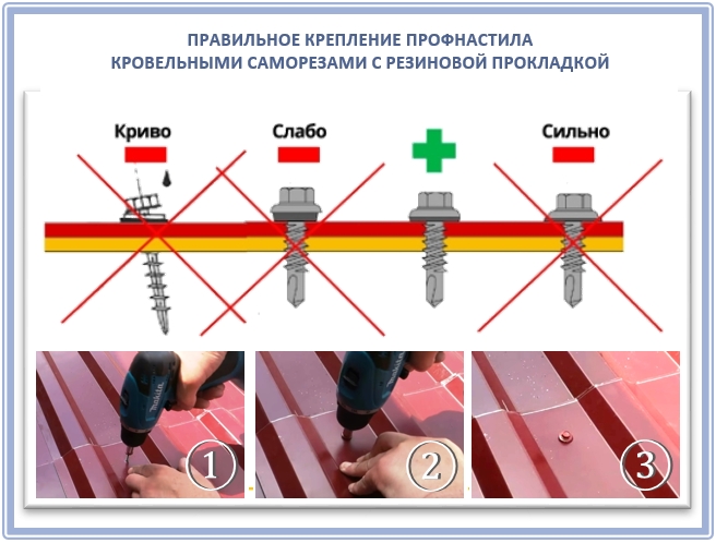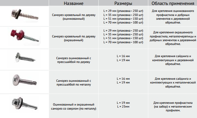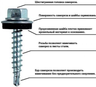 Les vis ordinaires sont mal fixées sur une tôle mince, ce qui rend impossible l'installation du carton ondulé sur la structure. L'absence de rondelle large provoque une usure rapide de l'embase à la place de l'attache. Pour cette raison, il est nécessaire d'utiliser des vis autotaraudeuses spéciales pour les tôles profilées.