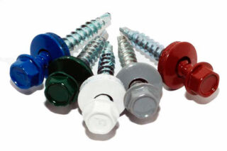 Vis avec rondelle presse utilisé pour fixer les revêtements de sol aux clôtures et aux façades des maisons. Ils sont principalement recouverts de composés anti-corrosion, moins souvent de composés décoratifs. La forme de la tête peut être hexagonale, semi-circulaire ou fraisée. Lors de la fixation, des joints en caoutchouc sont également utilisés.