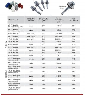 Les fixations en acier galvanisé appartiennent au groupe premium. La consommation de vis pour 1 m² de feuille est de 9 à 10 pièces. Pour le montage en bout, vous aurez besoin d'environ 2 fois plus de vis autotaraudeuses.