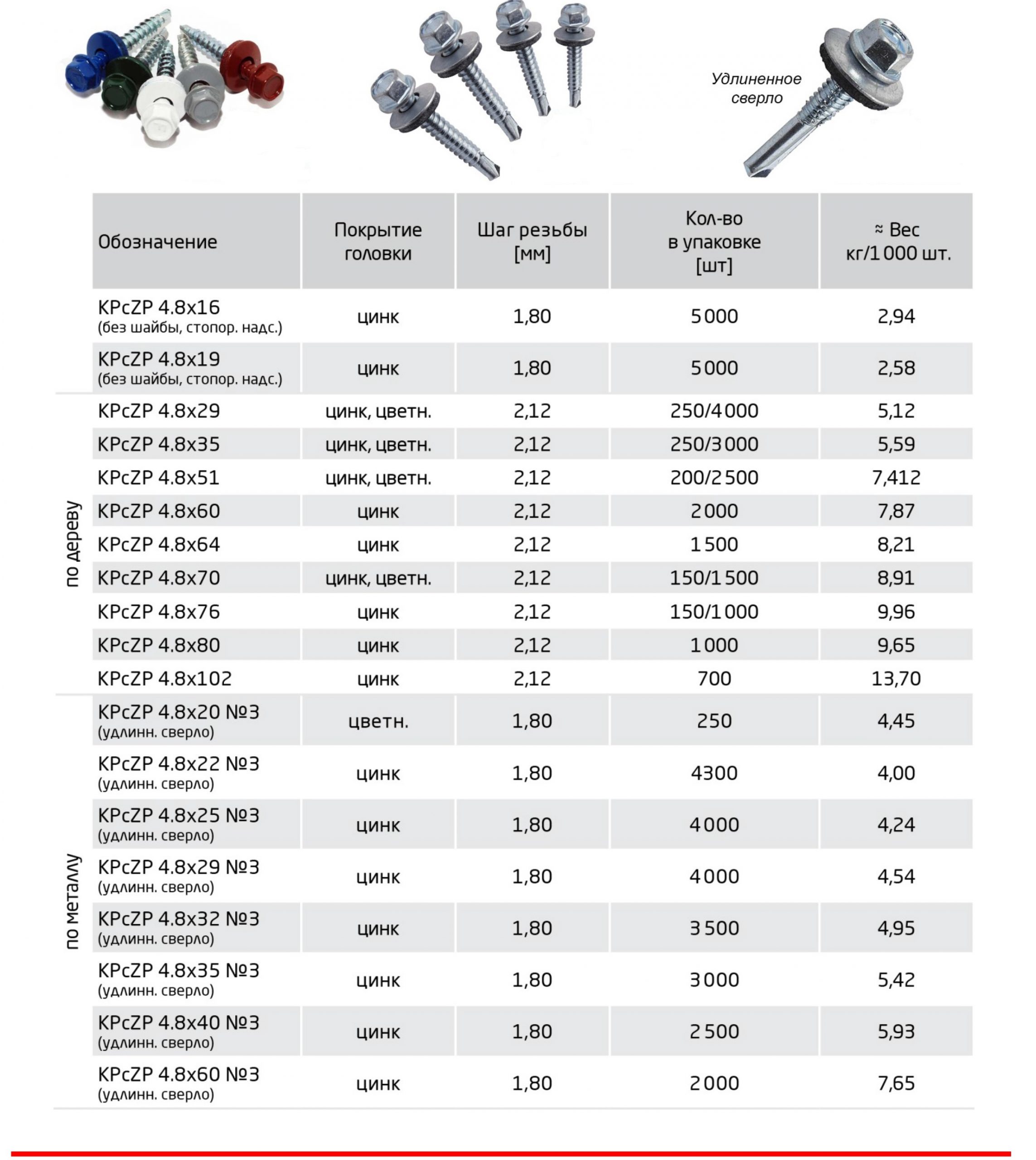 - Fil - épaisseur jusqu'à 0,5 mm, qui est prise en compte dans le pas de filetage des fixations pour métal. Pour les surfaces en bois, le paramètre augmente.