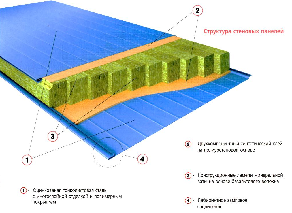 Les panneaux sandwich thermiques sont un matériau de construction durable et polyvalent. Avec son aide, vous pouvez revêtir le bâtiment de l'extérieur tout en isolant la pièce. Le principe général de création des panneaux est le suivant : 2 tôles entre lesquelles se trouve une couche d'isolant.
