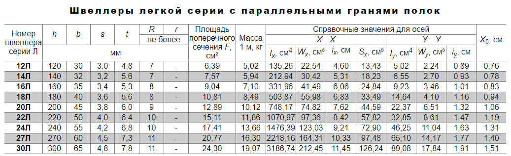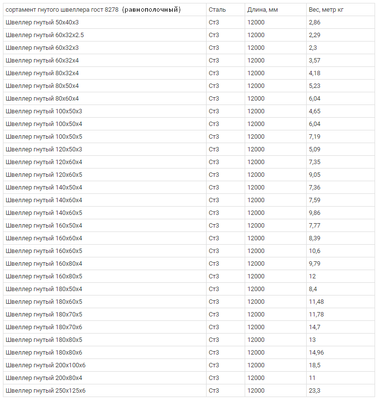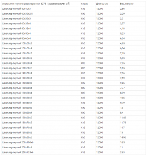 - Chacune des normes décrit non seulement le type de canal classique - à brides égales et à brides parallèles, mais également à brides larges, coudées, avec différentes classes de précision - GOST 8278-83B GOST 8281-80, GOST 5422-73.