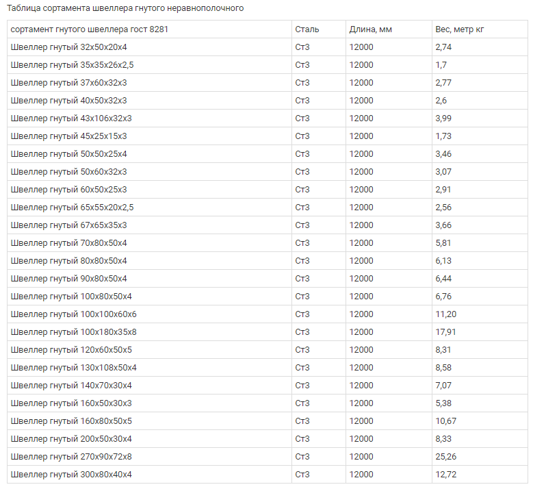 Le canal coudé est produit à la fois conformément à GOST et conformément aux spécifications techniques. Les dimensions du canal peuvent être loin de la norme.