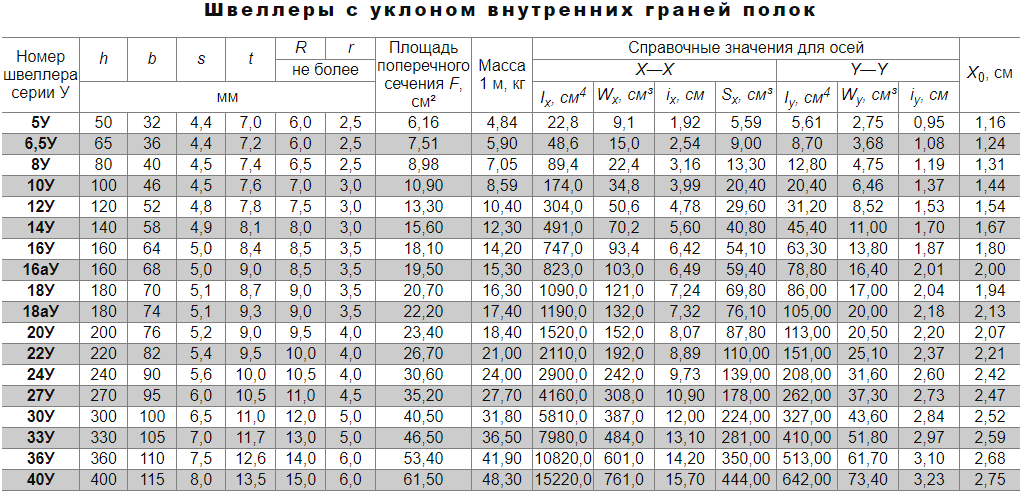 - Série U - dans ce profil, les étagères sont parallèles les unes aux autres, si vous évaluez les côtés extérieurs de la pièce. Cependant, à l'intérieur les étagères ont une pente en raison de l'épaisseur différente du bord et du lieu de connexion avec le mur. La pente est lisse, a un certain rayon de courbure, qui est réglementé par GOST. Il varie de 6 à 15 mm. Dans ce cas, la masse du canal avec des étagères inclinées coïncide avec l'analogue de la série P, à condition que l'épaisseur et les dimensions de la paroi soient les mêmes. La pente est faible : la valeur maximale atteint 10 %.