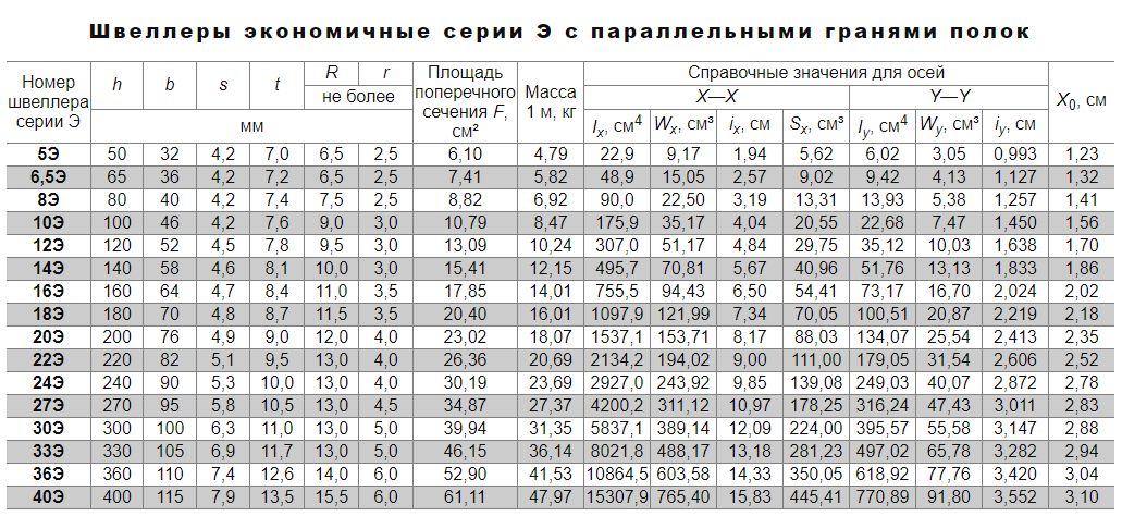 - Série E - économique. Reçu ce nom en raison de la faible consommation de matière. Ceci est réalisé en arrondissant les étagères parallèles sans réduire l'épaisseur. Mais avec ces dimensions, le canal le plus léger de la série P pèse 4,84 kg, et celui de la série E - 4,79 kg. Lors de l'utilisation de métal laminé dans les travaux de construction, cette différence se traduit par de grandes économies.