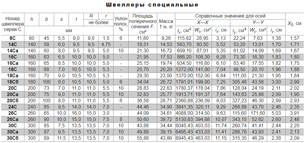 - GOST 8240-97 décrit la gamme de canaux laminés à chaud, à la fois de valeur générale - pour la construction et le renforcement des sols et des murs, et spéciaux.