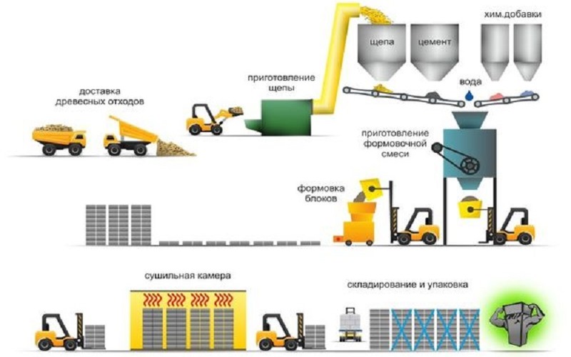 Technologie de production Le béton de bois comprend plusieurs étapes :