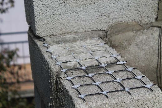Avant de poser la première rangée de blocs, il est nécessaire d'effectuer imperméabilisation aux endroits où les blocs jouxtent la fondation. Renforcez toutes les 3 à 5 rangées de blocs maille régulière.
