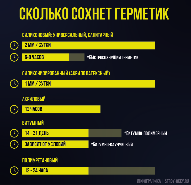 - Temps de séchage mastic silicone de type acide petit - seulement 5-6 heures... Les produits neutres gèlent plus lentement - environ une journée, tandis que la température de l'air ne doit pas être inférieure à +5 degrés.