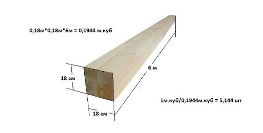 Pour connaître le volume d'un bois d'une telle section de 6 m de long, il faut multiplier les indicateurs : 6 * 0,03 = 0,18 m³. Vous pouvez déterminer le nombre d'unités de ce produit dans un mètre cube : 1 m³ / 0,18 m³ = 5,55 pièces.