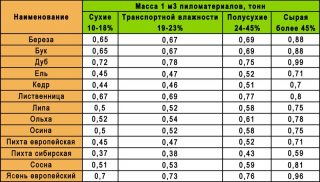 - Humidité du bois... Plus la qualité et le séchage de la matière première sont élevés et plus la teneur en eau est faible, plus le mètre cube du produit sera léger.