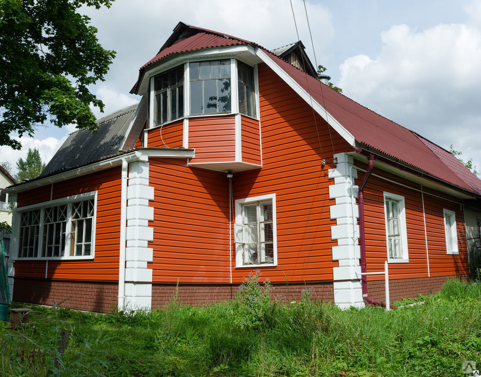 Le bâtiment peut être grossièrement divisé en toit, murs, plinthe et éléments supplémentaires, qui comprennent les ouvertures, les gouttières, etc. Coins le plus souvent exécuté de la même couleur que la base ou utilisez des teintes contrastées. La première option réduit visuellement le bâtiment, tandis que la seconde, au contraire, l'agrandit.