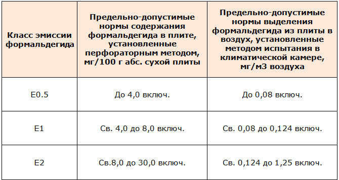 - Les timbres FBA, FB, FK appartiennent à la classe d'émission E1, tandis que 1 m³ de masse sèche de panneaux ne peut contenir plus de 8 mg de formaldéhyde. Dans l'air lors d'une étude en chambre, pas plus de 0,124 mg par mètre cube est autorisé, et la méthode d'analyse de gaz ne doit pas révéler plus de 3,5 mg / m² · heure ou pas moins de 5 mg pendant trois jours à partir du moment où il quitte convoyeur.