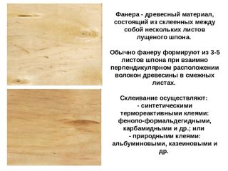 Dans le premier cas, les toiles sont collées entre elles par un tricot, placé sous presse à une température de +24 - 28°С... L'exposition est 6 - 10 heures, la colle durcit, les panneaux plaqués sont collés ensemble. Avec la méthode à chaud, le composé les feuilles avec une couche de colle sont placées sous une presse en mode haute température (+70 - 80 ° C).