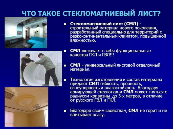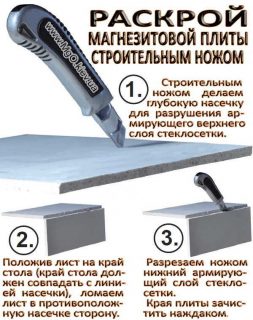Les feuilles de verre de magnésite sont utilisées pour l'intérieur et Travaux externes... Les principaux sens d'utilisation en open space :
