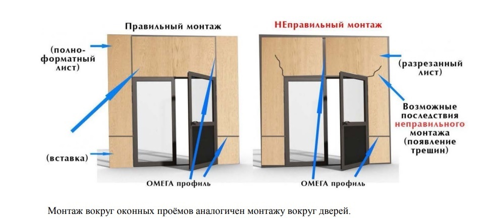 Les murs en bois massif ne sont pas rembourrés par LSU. La différence des coefficients de dilatation thermique conduit au fait que les tôles se déforment. Afin d'exclure la rupture et la destruction du matériau, il est nécessaire de respecter strictement la technologie d'installation, qui prévoit la disposition des lattes à partir de profilés en acier galvanisé.