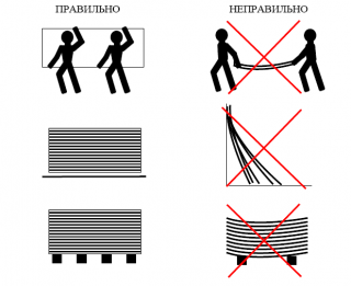 Le déchargement s'effectue mécaniquement ou manuellement. Feuilles porté en position verticale, 2 piècesen évitant les à-coups, les virages, les mouvements ondulants.