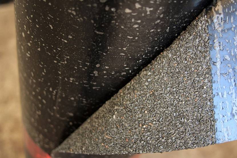 - Papier de toiture à gros grains a le point de ramollissement le plus bas de la composition liquide (23-28 degrés). La fraction grossière est pulvérisée sur la partie supérieure et sur la partie inférieure, en règle générale, petite. Sur les toits à structure peu profonde, construits à l'aide de revêtements au rouleau, un tel matériau est utilisé comme couche supérieure. Tous les gicleurs utilisés rendent la toiture plus solide et plus résistante au feu.
