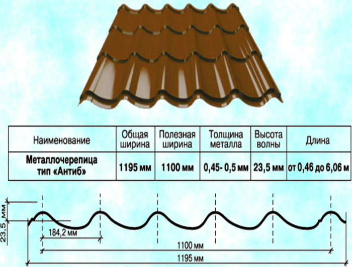 Toute la longueur - distance entre les bords d'extrémité opposés. Il existe des produits en vente avec des caractéristiques de 450 à 8000 mm. Le paramètre affecte la commodité du travail et la consommation de matériaux ou la nécessité de chevaucher les feuilles par la longueur d'onde de la tuile métallique (étapes).