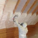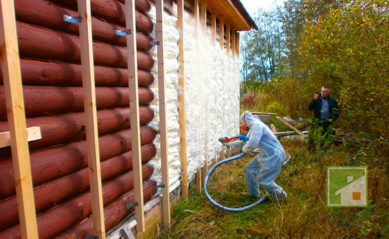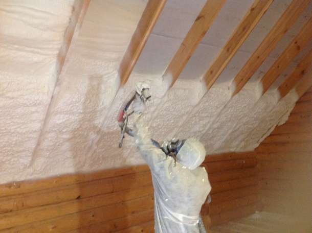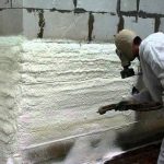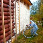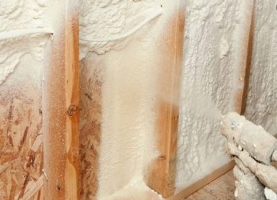 - Pulvérisation - dans ce cas, la mousse est appliquée de bas en haut. Les coins et les coins sont traités avec un soin particulier afin qu'il n'y ait pas de lacunes. Si nécessaire, la mousse peut être appliquée en plusieurs couches afin que l'isolant soit suffisamment épais.