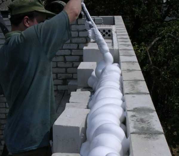 - Remplissage - dans ce cas, le matériau est coulé de haut en bas par petites portions dans l'attente d'une répartition naturelle dans un volume limité et de son remplissage. Si pendant le travail il y a des gouttes, elles doivent être enlevées pour que la surface soit nette. Les zones par lesquelles la mousse a pénétré dans la zone isolée doivent être scellées afin d'éviter la destruction du matériau sous l'influence de facteurs environnementaux.