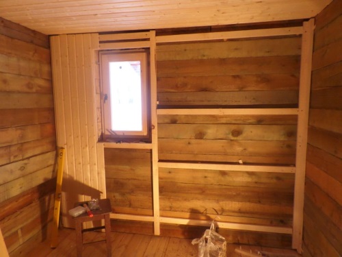 Le matériau est monté sur les murs et les plafonds, les colonnes et les poutres en sont gainées. Des planches minces sont utilisées pour les travaux d'intérieur et des planches massives sont utilisées sur la façade.