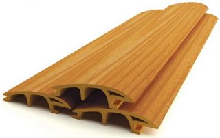 La doublure est souvent faite de mélèze, pin, épicéa, cèdre... Les matières premières de la composition contiennent des résines, elles sont donc placées sur la façade afin d'augmenter la résistance de la couche à l'humidité et à d'autres facteurs négatifs. La roche résineuse s'assombrit moins pendant le fonctionnement.