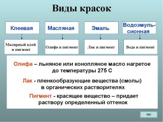 - Pigments - l'uniformité et l'intensité du chevauchement des surfaces, la résistance aux facteurs atmosphériques et la température dépendent de leur type.
