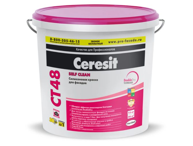 Le produit est polyvalent, convient à toutes les surfaces, peut être appliqué sur la façade. En raison de sa structure visqueuse, aucune préparation spéciale de la base n'est requise, le matériau en silicone est capable de masquer les petites fissures. Parmi les inconvénients figurent le coût élevé des matériaux de peinture, ainsi que la corrosion possible du métal en raison de la perméabilité aux gaz du revêtement.