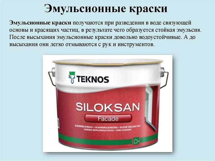 Une émulsion est une composition obtenue à partir de petits insolubles particules de polymères et pigments, en suspension dans l'eau. LKM s'adapte bien à toutes les surfaces, à l'exception de celles déjà peintes avec des peintures ou des vernis brillants. Il est économique, sèche rapidement et est inodore. Les émulsions résistent à l'humidité et aux alcalis, ne s'écaillent pas. Leurs propriétés dépendent du type de liant.