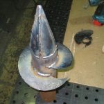 Puis la lame est soudée à la tige... En haut du support faites une paire trous pour la tige ou créer une tête séparée. Conception anti-corrosion recouvert de peinture de bateau.