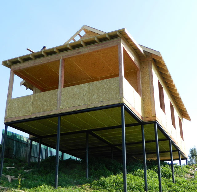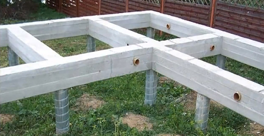 Parfois, des pieux vissés sont combinés grillage (ruban béton armé)destiné pour une répartition uniforme de la charge... La création d'une telle fondation nécessite des recherches géologiques minutieuses et le respect de la technologie. L'une des erreurs les plus courantes est de garder la ceinture au sol.... Dans ce cas, les forces de soulèvement par le gel agiront de manière inégale et le grillage se pliera dans les zones proches des supports. En outre, une telle fondation crée des difficultés lors de l'isolation du sol et de la pose des communications. Il est le plus approprié pour les zones avec une forte pente du relief et le danger de glissements de terrain.