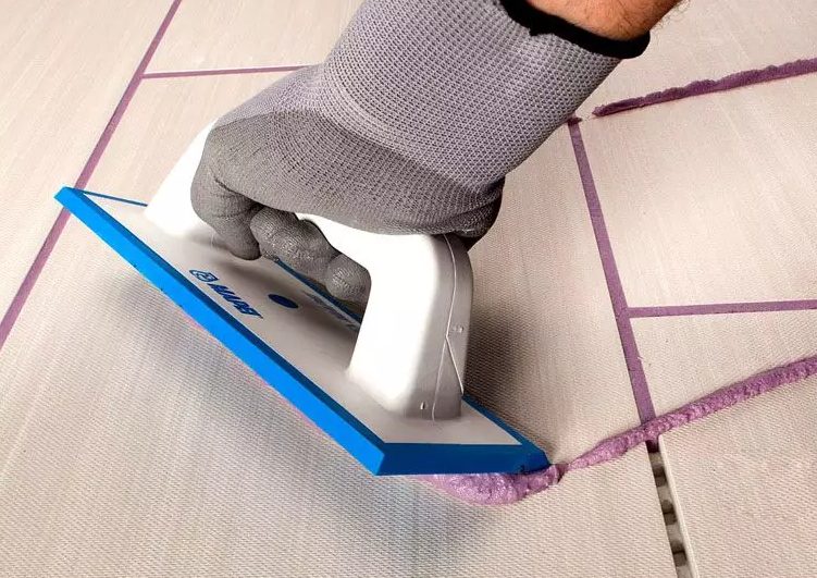 Pour un style sans couture les carreaux (joint 0,5 - 1,5 mm) sont plus souvent utilisés avec des compositions de ciment. La spatule est déplacée en diagonale par rapport à la ligne, essayant d'imposer une masse avec une glissière. Après séchage, l'excédent est éliminé dans le sens transversal. Le processus laborieux est mieux essayé sur une petite partie du mur.