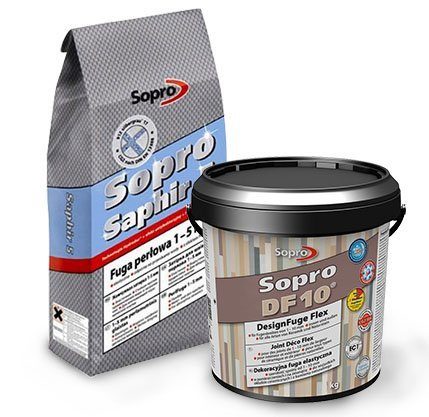 Sopro (Allemagne) produit du coulis pour les joints de carrelage à l'extérieur des bâtiments. Il existe une catégorie de compositions de paillettes. Vous pouvez acheter un outil pour appliquer et enlever le vieux mastic.
