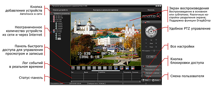 Vous n'avez pas besoin d'apprendre les protocoles réseau et de maîtriser le travail avec les adresses de port, etc. L'utilisateur doit savoir comment entrer dans le menu du DVR et comment installer des programmes sur un PC. Lors de la combinaison de points d'observation et de collecte d'informations, il est permis d'utiliser des appareils de différents fabricants. Le nombre total de canaux dans ce cas atteint 64 unités (sans logiciel spécial, ce chiffre est limité à 8-16 caméras).